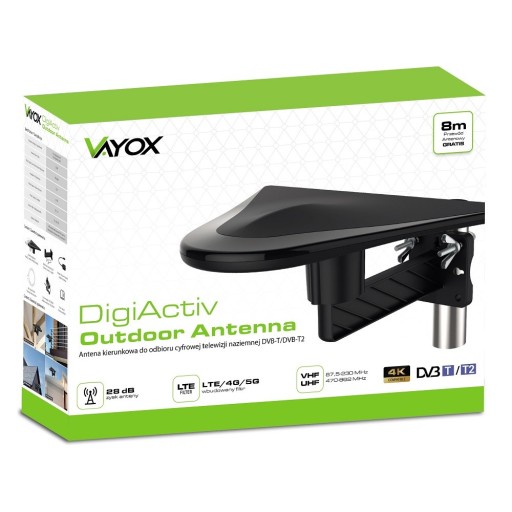 Antena zewnętrzna DigiActiv 4G LTE VHF UHF VA0023 Black Vayox