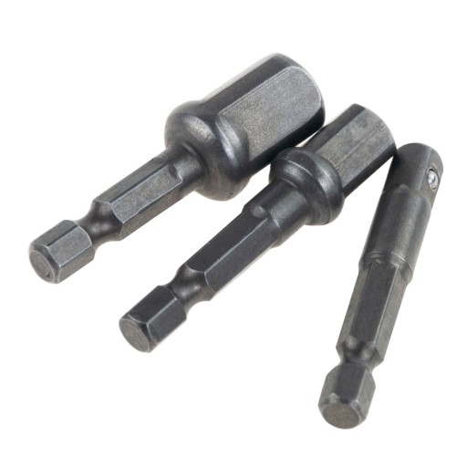 Komplet składa się z 3 sztuk nasadek w różnych, popularnych i często stosowanych rozmiarach, a mianowicie 1/4", 3/8" oraz 1/2". Ilość elementów umożliwia praktyczne wykorzystanie zestawu i zastosowanie go do wielu prac czy napraw.