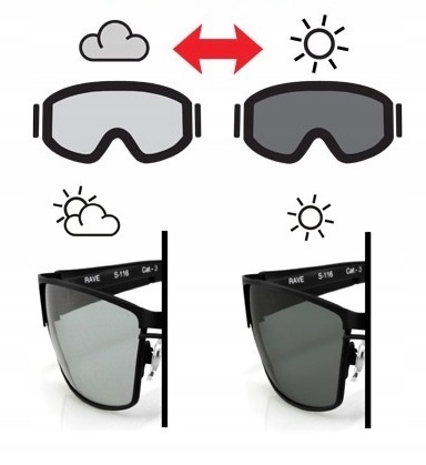 Soczewki fotochromowe ciemnieją przy zwiększającym się natężeniu UV i rozjaśniają przy zmniejszeniu intensywności promieniowania świetlnego. Filtry fotochromowe stanowią skuteczną ochronę oczu zarówno w warunkach intensywnego promieniowania słonecznego, jak i niedostatecznego oświetlenia. Dodatkową zaletą wszystkich soczewek fotochromowych jest ich zdolność do filtrowania całego zakresu promieniowania UV.