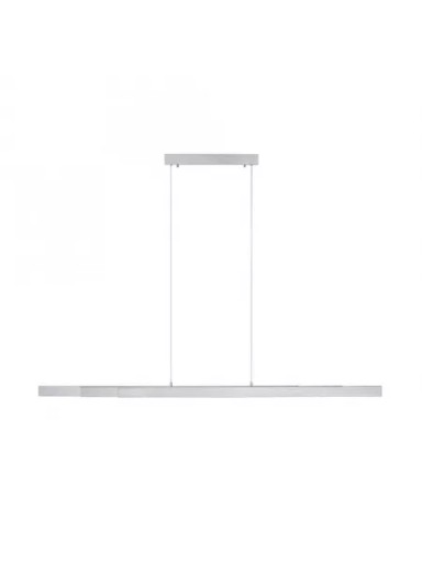 Lampa wisząca LUZI 11660-95 charakteryzuje prosta konstrukcja utrzymana w uniwersalnym białym kolorze. Konstrukcja składa się z listwy montażowej utrzymującej się na dwóch linkach. Wbudowany panel diod LED emituje delikatnie i równomiernie rozesłane światło o barwie równej 3000K oraz strumieniu świetlnym o mocy 2200 lumenów. Model sprawdzi się w jadalni nad stołem, jak również w kuchni nad wyspą kuchenną doskonale oświetlając przestrzeń blatów. Wysokość lampy sięga 180 cm.