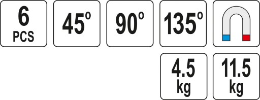 ZESTAW SPAWALNICZYCH KĄTOWNIKÓW UCHWYTÓW MAGNETYCZNYCH KPL. 6SZT. YATO YT-08678