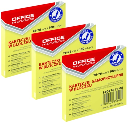✔️ 3x Bloczek Samoprzylepny / 76 x 76 mm / 100 Kartek