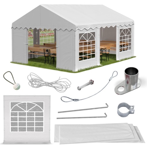 Poszycie sprawdzi się świetnie podczas organizacji każdego plenerowego eventu, bankietu czy festynu. Stanowi idealną ochronę cateringu oraz zaproszonych gości podczas wesela, komunii, pikników oraz innych imprez okolicznościowych. Swoje zastosowanie znajdzie także jako altana, namiot ogrodowy bądź tarasowy. Namiot można używać również jako powierzchnie handlowe oraz dodatkowe miejsce w swoim lokalu.