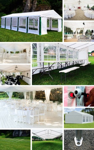 Poszycie sprawdzi się świetnie podczas organizacji każdego plenerowego eventu, bankietu czy festynu. Stanowi idealną ochronę cateringu oraz zaproszonych gości podczas wesela, komunii, pikników oraz innych imprez okolicznościowych. Swoje zastosowanie znajdzie także jako altana, namiot ogrodowy bądź tarasowy. Namiot można używać również jako powierzchnie handlowe oraz dodatkowe miejsce w swoim lokalu.