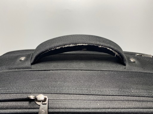 Zdjęcia przykładowej torby. Wizualnie torby są w stanie bardzo dobrym, minimalne ślady użytkowania. Zamki działają.