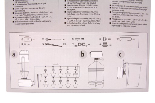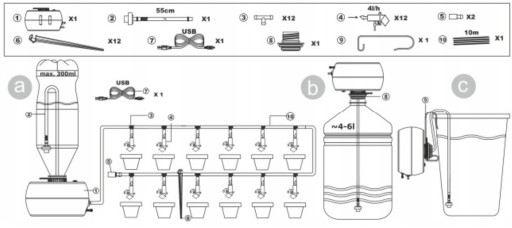 ➡️ Elementy zestawu automatycznej konewki i elementy sterujące: