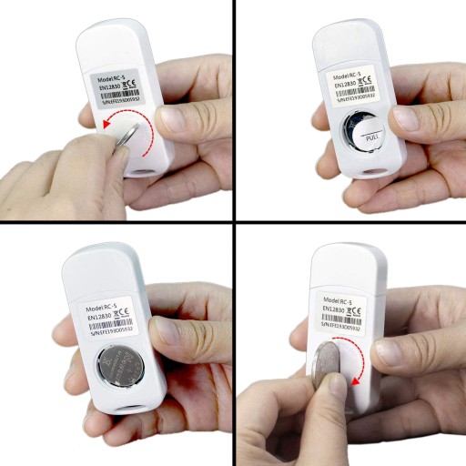 - Zasilanie: bateria CR2032 (w zestawie, zapasowe baterie są do nabycia na naszych aukcjach)