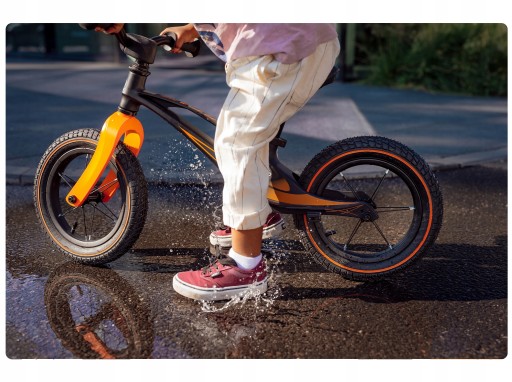 ✔ Rowerek został wyposażony w 12-calowe pompowane koła z bieżnikiem.