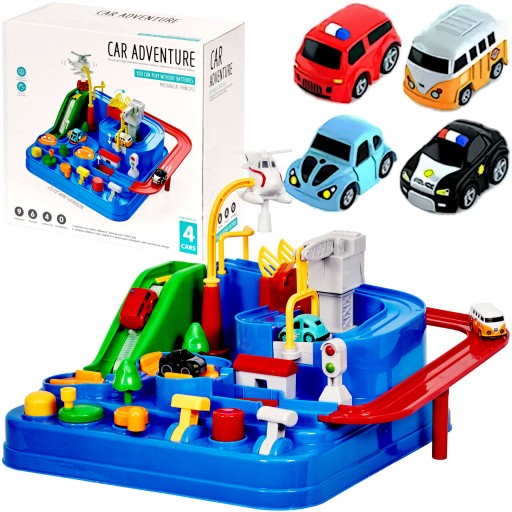 ИНТЕРАКТИВНАЯ ЦВЕТНАЯ АВТОМОБИЛЬНАЯ ТРАССА С ПРЕПЯТСТВИЯМИ ГОНКИ ПАРКОВКА НА 4 АВТОМОБИЛЯ