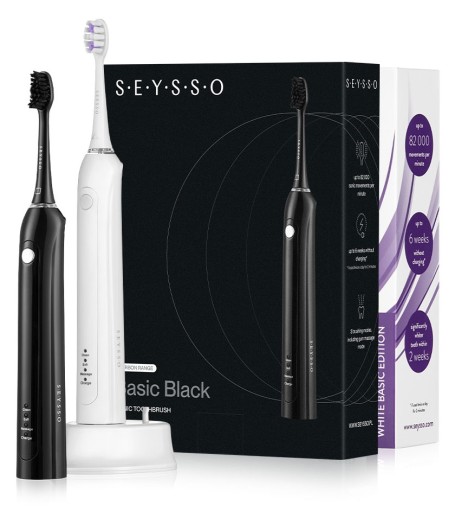 ⭐️ Na tej aukcji kupujesz wyjątkowy zestaw dla dwóch osób - biała i czarna szczoteczka SEYSSO BASIC! ⭐️