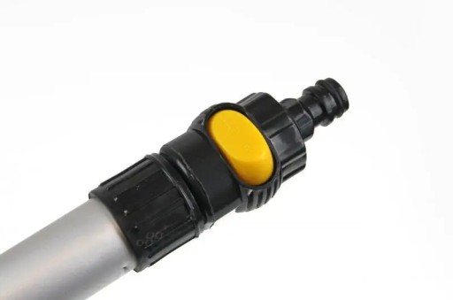 Trzonek posada piankowe uchwyty, szybkozłączkę do podłączenia węża z wodą oraz zawór przepływu wody.