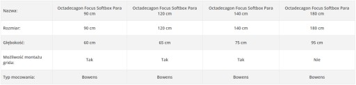 W konstrukcji Octadecagonów zastosowano mocowanie do lamp typu Bowens. Dla systemów Elinchrome i Profoto istnieje możliwość podłączenia dzięki dodatkowemu adapterowi (dostępnemu osobno).