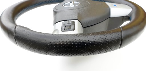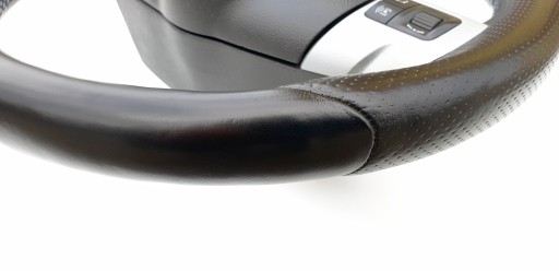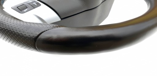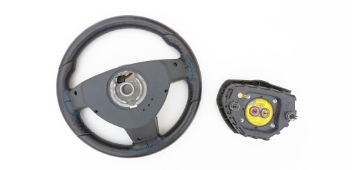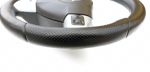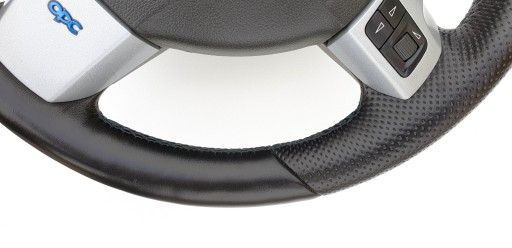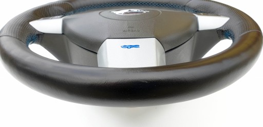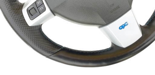 Kierownica ogólnie ładna choć do ideału jej daleko. Skóra cała, nie jest szorstka, nie jest powycierana - fajna, delikatna w dotyku. Nie ma przebarwień i co ważne nie ma też pęknięć co jest często spotykanym defektem w tych kierownicach. Oczywiście jakieś ryski, zarysowania, wgniotki się trafią, to nie jest w końcu nowe. Szwy niebieskie jak przystało na OPC - wszystkie całe, nic nie puściło. Gumeczki multifunkcji ładne. Dekory multifunkcji ładne choć nie są idealne - jak widać znajdą się ryski, małe odpryski. Emblemacik OPC ładny. Wieloklin okej, frezy widoczne. Kierownica prosta. Gratisowo dorzucam poduszkę, bo wiem że czasem są problemy z dopasowanie do odpowiedniej kierownicy (kierownice z taśmą/połączenie multifunkcji Dalphimetal miały inaczej zabudowaną poduszkę).
