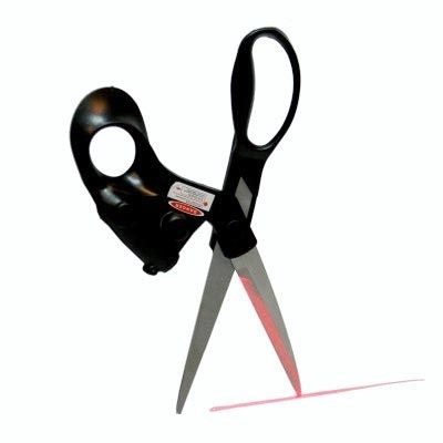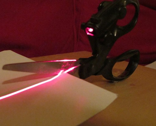 Każdy, kto wziął kiedyś nożyczki do ręki i próbował wyciąć coś precyzyjnie wie, że jest to zdanie z serii mission immposible i oparte dodatkowo na licznych prawach Murphy'ego mówiących w skrócie o tym, że jak coś ma pójść krzywo na na 100% pójdzie. Znalazł się jednak ktoś, kto rzucił wyzwanie krzywemu losowi i stworzył gadżet, którego nie powstydziłby się nawet pewnie sam James Bond - nożyce laserowe. Po naciśnięciu guzika wiązka lasera pada na materiał, który chcemy przeciąć i pokazuje nam prostą linię cięcia. Teraz już prościutko i bez problemów jak po sznurku przetniemy wszystko, co nawinie nam się pod nożyce. Ale uwaga: Nożyczki są bardzo ostre.