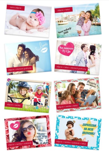 - w kreatorze opcja edycji zdjęcia, dodania tekstu, dedykacji oraz elementów ozdobnych