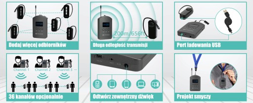 - Wpoważony przez akumulator litowy; Bezprzewodowy system przewodników wycieczki działa do 9-10 godzin; wystarczy na dzień pracy; słuchacze nie przegapią żadnych wiadomości