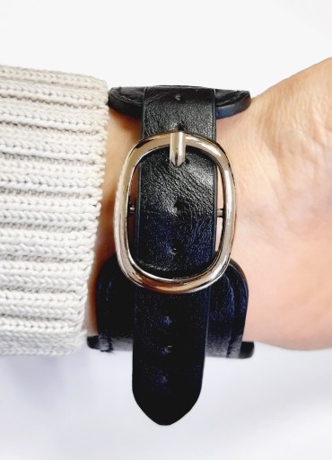 Кожа, широкий браслет, кожа, широкий ремешок для часов - черный