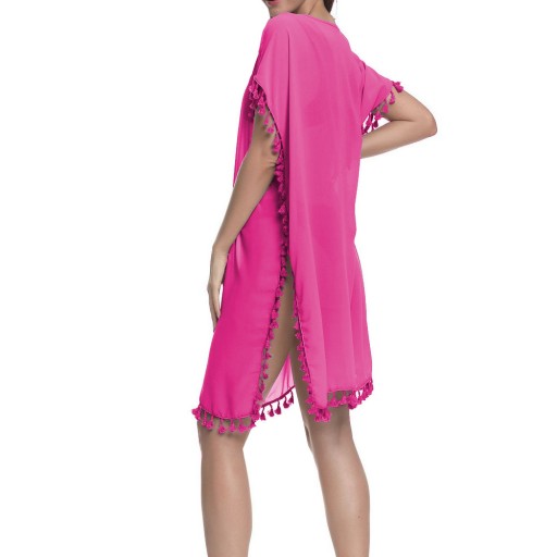 PAREO TUNIKA PLAŻOWA Z FRĘDZLAMI RÓŻOWA