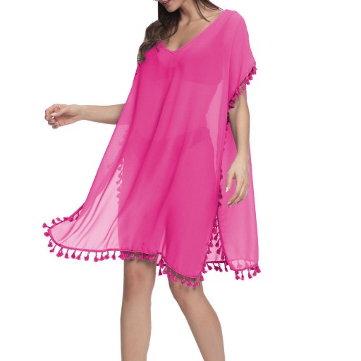 PAREO TUNIKA PLAŻOWA Z FRĘDZLAMI RÓŻOWA