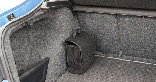 Mocowane za pomocą rzepów do np. tapicerki welurowej/filcowej w bagażniku. Wymiary to: 28 x 23 x 12 cm (dł/szer x wys x grub./głęb.). Torba wykonana z solidnego filcowego materiału, zamykana również na rzep. Kolor czarny.
