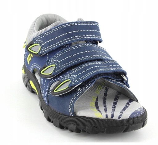Dbając o zdrowy i prawidłowy rozwój stóp dziecka sandały wykonano z najwyższej jakości materiałów obuwniczych. Wierzch letnich bucików to naturalna skóra nubukowa. Cholewka wykończona jest miękkim piankowym kołnierzem chroniącym kostki przed obtarciami.