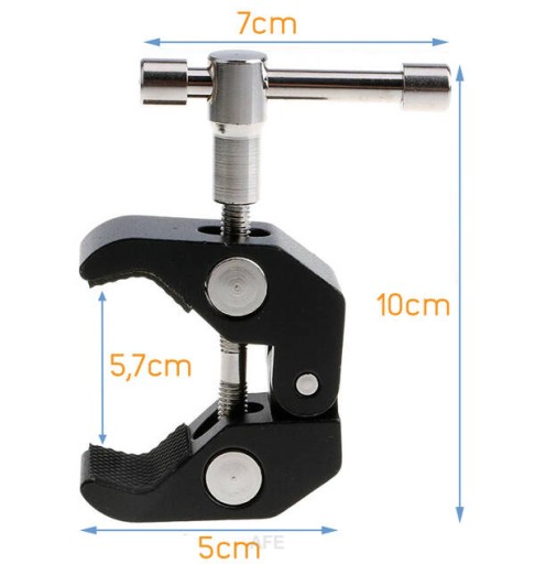 ✔ W zestawie znajduje się uchwyt CRAB , który posiada dwa rodzaje otworów gwintowanych 1/4'' i 3/8'' wykorzystywany w fotografii , dzięki czemu możemy zamocować belkę poprzeczną służącą do montażu lamp, blend oraz parasoli. Uchwyt posiada regulację, więc możemy dopasować go do belek o różnej grubości.