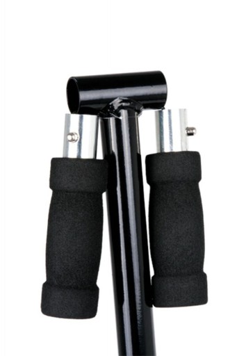 Góra skoczka w kształcie litery T, rączki wykończone gąbką, rozkładane stopki, wytrzymała stalowa sprężyna, to wszystko sprawia, że możecie zabrać pogo w dowolne miejsce i cieszyć się komfortowym użytkowaniem. Dodatkowo od spodu znajduje się wymienna gumowa podkładka wykonana z bardzo twardej gumy.