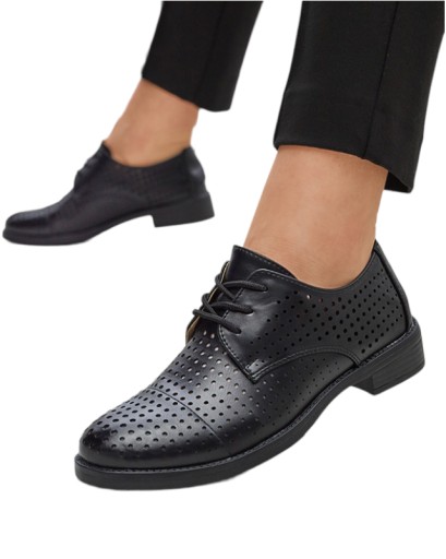 Rewelacyjne damskie sznurowane półbuty z ażurową cholewką wykonaną z eko skóry, wkładka również eko skórzana. Idealne na co dzień! UWAGA: model preferowany dla osób o wąskiej anatomii stopy.