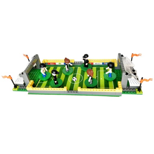 - trybuny i bramki z klocków, zielone płyty konstrukcyjne pod trybunami i bramkami