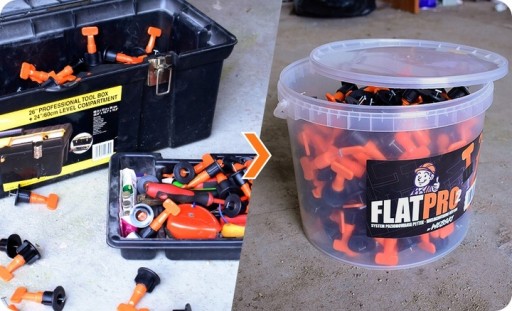 Dzięki systemowi poziomowania FLATPRO.2 przyspieszysz bardzo znacząco swoją pracę. Już nie musisz na zmianę pukać młotkiem i sprawdzać poziomicą każdej najmniejszej zmiany.