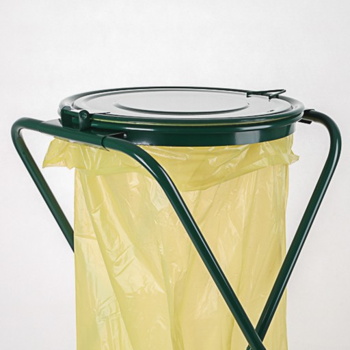Wysokiej jakości, metalowy stojak z deklem na odpady. Dedykowany do worków o pojemności 120L.