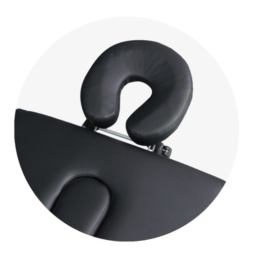 Odpowiedni profil otworu zapewnia komfort osobie masowanej. Zaślepka idealnie uzupełnia otwór podczas korzystania z zagłówka