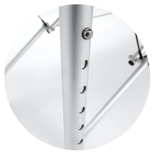 Konstrukcja stołu (tzw. stelaż) została wykonana z aluminium, która znacząco obniża wagę produktu jednocześnie zachowując jego stabilność