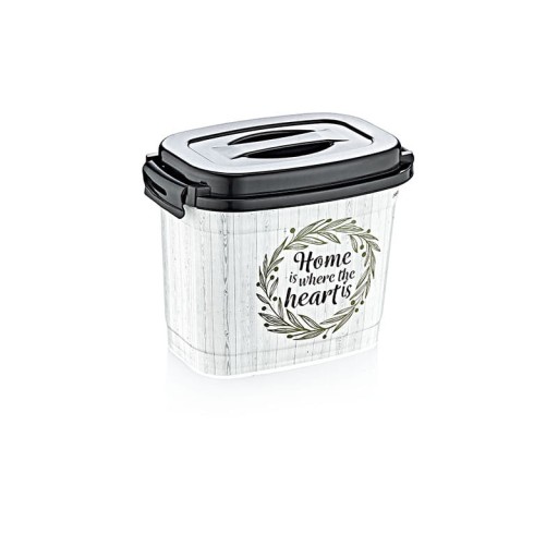 Praktyczny pojemnik na detergenty Home z nowoczesną dekoracją białych drewnianych desek z czarną pokrywą, będzie idealnie pasować do każdego rodzaju pomieszczenia. Pojemnik przeznaczony jest do przechowywania proszku do prania, kapsułek do zmywarki, wybielaczy, udrażniaczy, takich jak produkty o właściwościach żrących. Sprawdzi się także jako pojemnik na drobiazgi, kosmetyki, grzebienie, kredki lub pojemnik na artykuły biurowe. Wyposażony w pokrywę zamykaną na dwa zatrzaski oraz wygodny uchwyt znajdujący się na pokrywie. Wykonany z wysokiej jakości tworzywa sztucznego, łatwy w oczyszczaniu i przenoszeniu, odporny na uszkodzenia. Produkt nie nadaje się do przechowywania produktów spożywczych.
