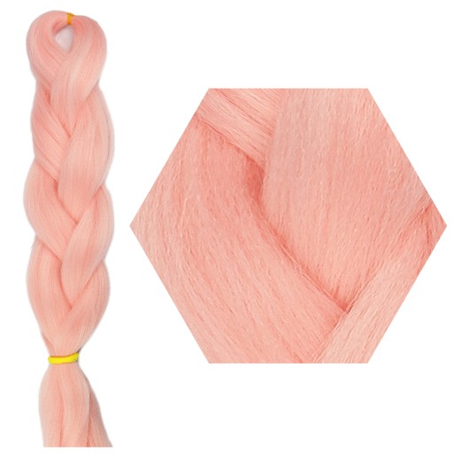 Włosy syntetyczne w przepięknym wariancie kolorystycznym - łososiowym. Wykonane z gładkiego i przyjemnego w dotyku henlonu.