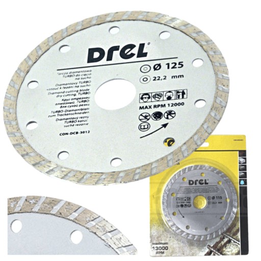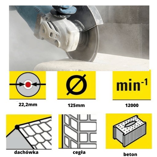 Tarcze diamentowe do szlifierek kątowych i maszyn tnących. Przeznaczone do pracy na sucho. Do przecinania materiałów budowlanych, takich jak cegła, klinkier, beton komórkowy, kostka brukowa, płytki ceramiczne itp.
