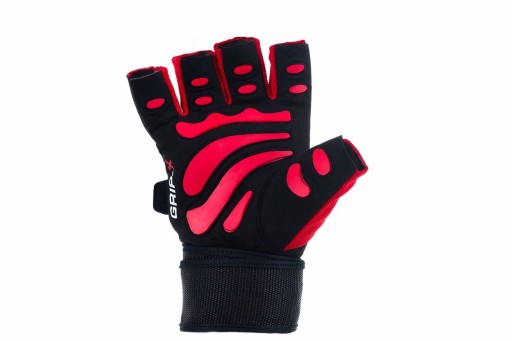 SYSTEM ANTYPOŚLIZGOWY GRIP-X© W rękawiczkach zastosowano system GRIP-X© gwarantujący doskonały chwyt zapobiegający wyślizgiwaniu się trzymanych przedmiotów. System składa się z kilkunastu wstawek wykonanych z utwardzonej gumy dzięki czemu nawet śliskie przedmioty (hatnle, gryfy) nie wyślizgną nam się podczas ćwiczeń.