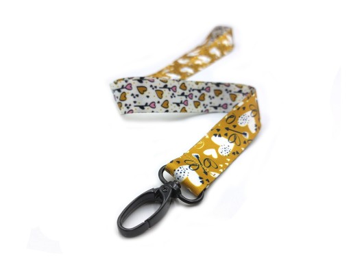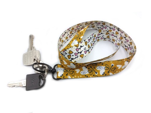 Smycz z nadrukiem w serca o szerokości 20mm z metalowym czarnym karabińczykiem do kluczy