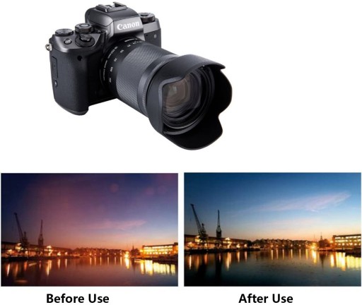 Dodatkowo osłona przeciwsłoneczna stanowi dodatkowe zabezpieczenie przedniej soczewki obiektywu przed uszkodzeniami