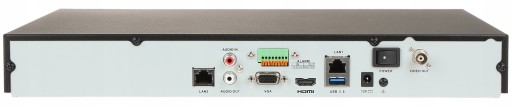 Obsługiwane rozdzielczości: max. 12 Mpx - 4000 x 3000 px ; Obsługa audio: 8 Kanałów ; Metoda kompresji obrazu: H.265+ ; Obsługiwane dyski twarde: 2 x 10 TB SATA ; Wejścia / wyjścia alarmowe: 4 / 1 ;