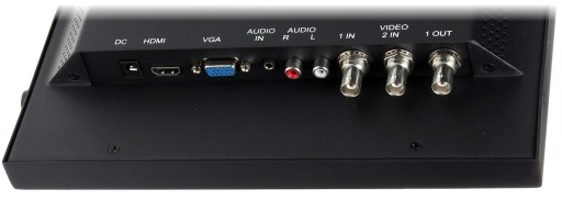 Na uwagę zasługuje zamocowanie przycisków sterujących poza obszarem roboczym monitora Tego typu rozwiązanie umożliwia włożenie go do obudowy, zapobiegającej osobom trzecim manipulowanie nastawami monitora Model ten, posiada praktycznie wszystkie rodzaje wejść, umożliwiając wyświetlenie dowolnych sygnałów stosowanych w technice CCTV