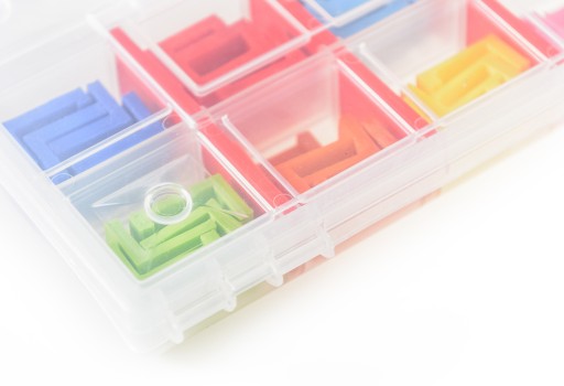 Dobraliśmy pudełko w taki sposób, by zostały wolne przegrody, które w razie potrzeby, pozwolą zmieścić dodatkowe najczęściej używane (zapasowe) dystanse.
