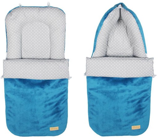 Becik śpiworek posiada wygodny, zapinany na stoperek kapturek , który otuli główkę dziecka podczas spaceru w chłodniejsze dni. Posiada dwustronne zamki błyskawiczne ułatwiające odpinanie i zapinanie becika śpiworka.
