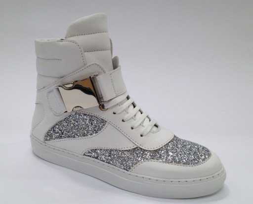 КОЖАНЫЕ КРОССОВКИ L'ESTROSA С СЕРЕБРЯНОЙ ПРЯЖКОЙ СКИДКА!