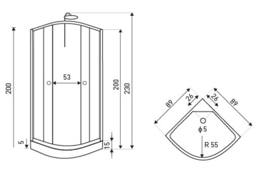 - Wymiary brodzika: 89 x 89 x 15 cm