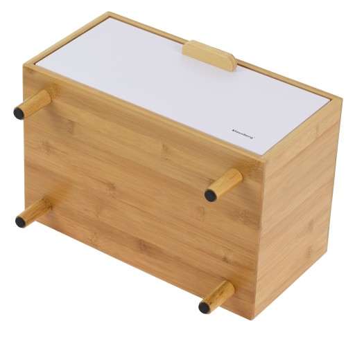 Chlebaka wykonany z drewna bambusowego, natomiast pokrywa STALOWA w kolorze białym.