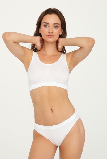 Zapewniający niezrównany komfort ruchów Top sportowy na szerokich ramiączkach pozwala każdej kobiecie poczuć na własnym ciele dotyk luksusu. O nieprzeciętnym komforcie użytkowania decyduje zastosowanie bezszwowej technologii. Skóra w okolicach biustu nie jest w żaden sposób uciskana. Brak fiszbinów i dodatkowych usztywnień sprawia wrażenie braku jakiekolwiek odzieży na ciele. Unikalna technologia pozwala odetchnąć pełną piersią i cieszyć się swobodą ruchów. Wysoki komfort zapewnia dodatkowo zastosowanie delikatnej, przewiewnej przędzy. Gwarantuje skórze optymalną cyrkulację powietrza. Domieszka elastanu sprawia, że top idealnie przylega do ciała.