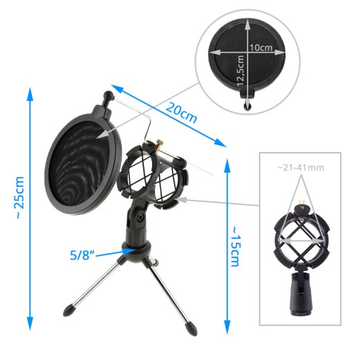 Stołowy mini statyw do mikrofonu z POP filtrem i uchwytem ANTISHOCK