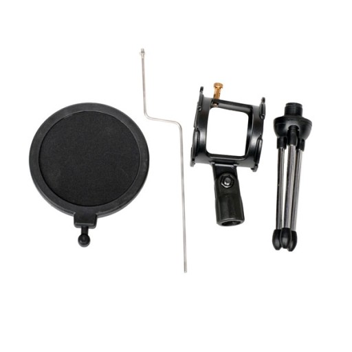 ? Solidnie wykonany mini statyw mikrofonowy ze studyjnym POP filtrem oraz koszem antywibracyjnym.