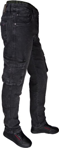 Spodnie Męskie Bojówki Czarne Przecierane Rozciągliwe (stretch) Pojemne Kieszenie